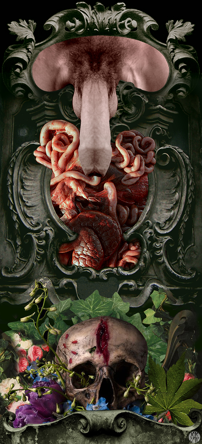 Nature morte au cerf avec deux chasseurs éventrés par la grâce de l'animal - 2019